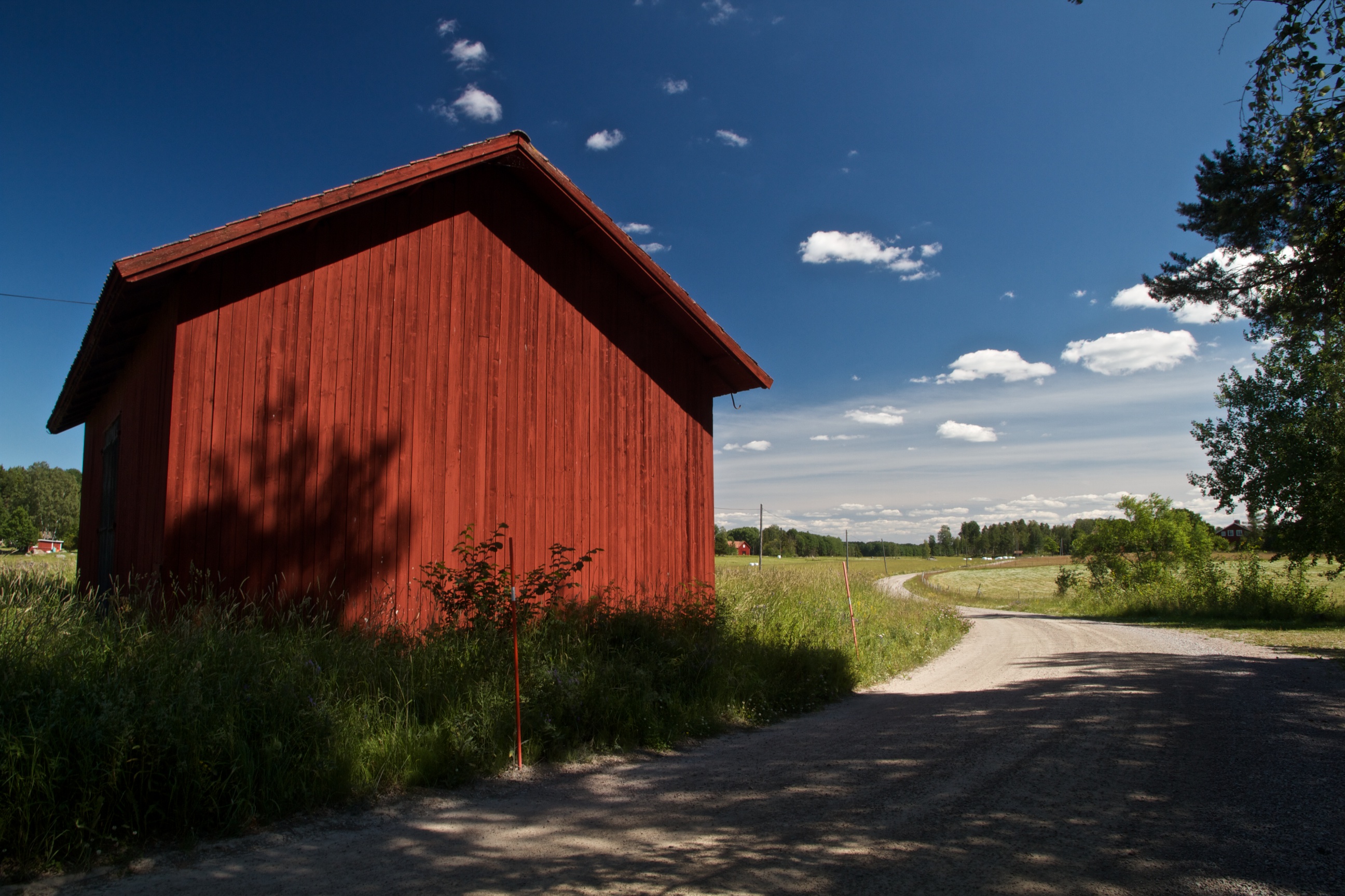 The area of central Sweden where I stay is on the dividing line between the south and north of the country – the area immediately south being characterised by broadleaf woodlands and wide, open, hedgeless fields with the area to the north being typically rocky pine forest, dark lakes and bogs, interspersed with smaller meadows and glades. However, everywhere there are field barns in a deep, rich red which bring timeless touch of man to the landscapes.