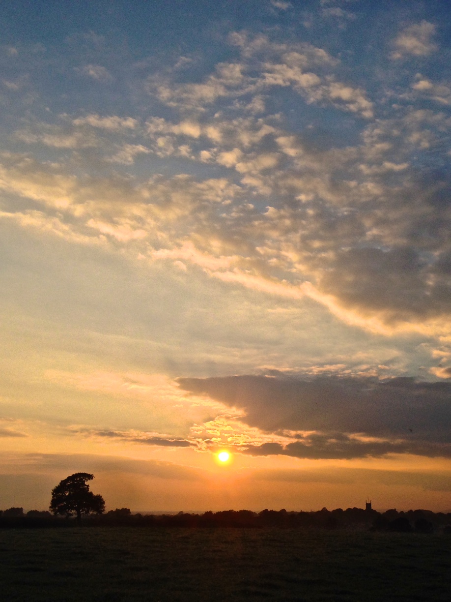 Driving away, I got a glimpse of the sunset over Wybunbury, the church tower standing out in silhouette. The last of the sun’s rays were still warm but the air flowing in through the open car window was cooling by the minute.