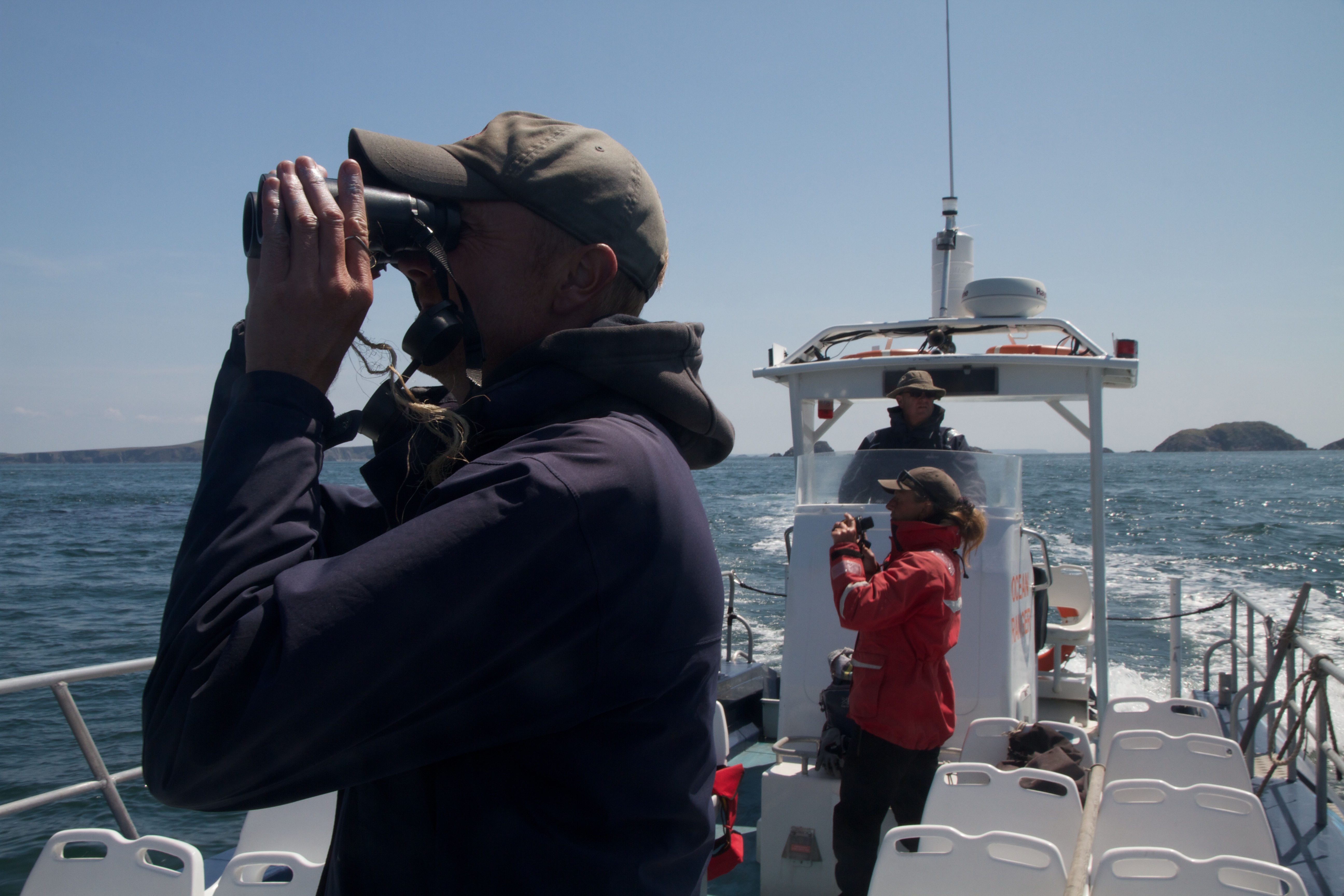 I joined Greg, Ramsey Island’s Site Manager, and Martin and Liz of Thousand Island Expeditions aboard the Ocean Ranger (a 500bhp jet boat!) to do a survey of the seabirds around the island.