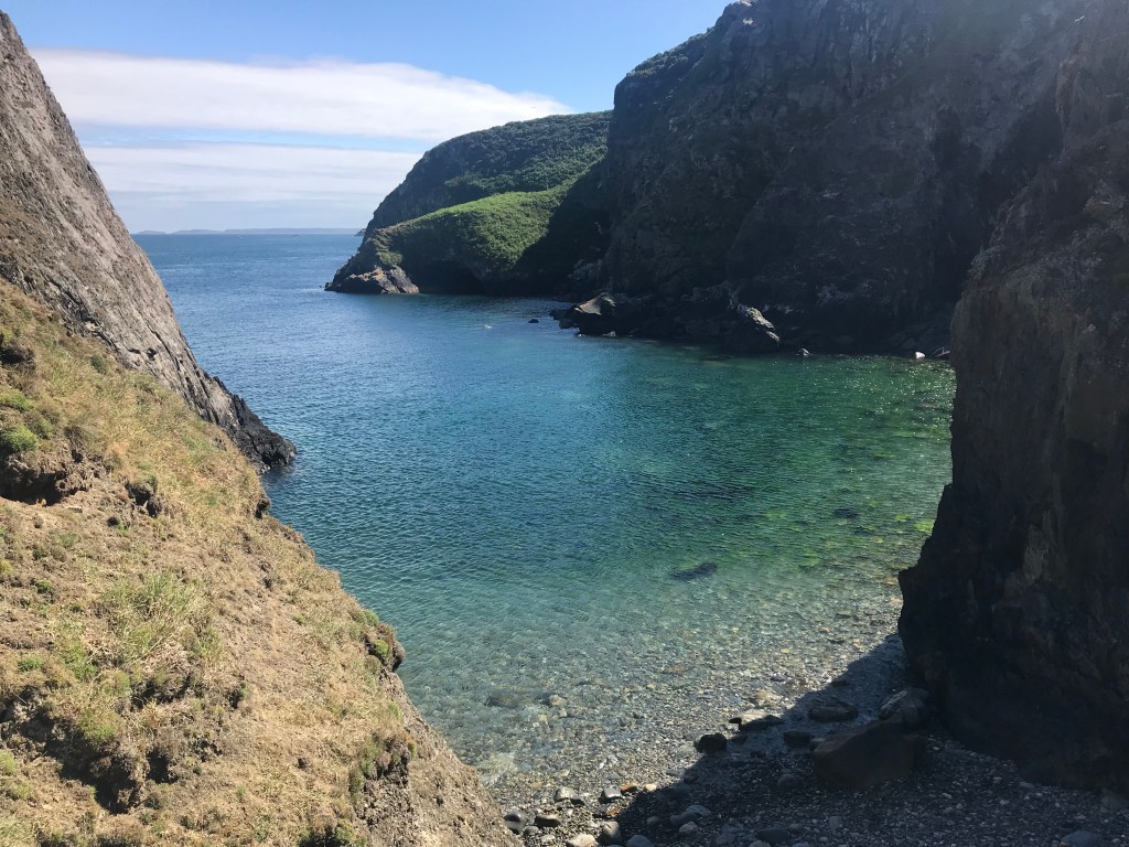 The weather continued to be lovely and my eleventh week was a quiet one really. We did quite a lot of bracken and thistle scything, and did the weekly weighing of shearwater chicks in the nest boxes on the east coast of the island.
