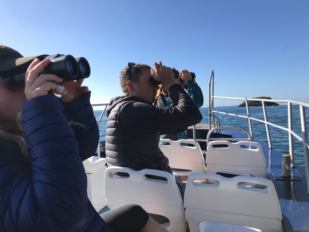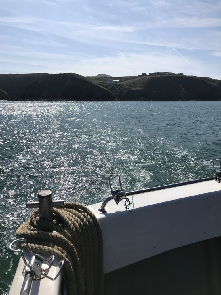 There also needs to be a mention of the visitors who make the short trip across Ramsey Sound each day. Looking after and talking to visitors is a big part of what the volunteers do, from helping them get on or off the boats, giving introductory talks, serving them in the shop, guiding them on walks, answering questions and queries, to just having a chat. Over the years I’ve met and talked to some very nice people and now even recognise some regulars as they get off the boat. They have also been very nice to me including giving me a enthusiastically sung rendition of Happy Birthday as they arrived on the second boat on my ‘big day’ and giving me a round of applause at the end of my last introductory talk.