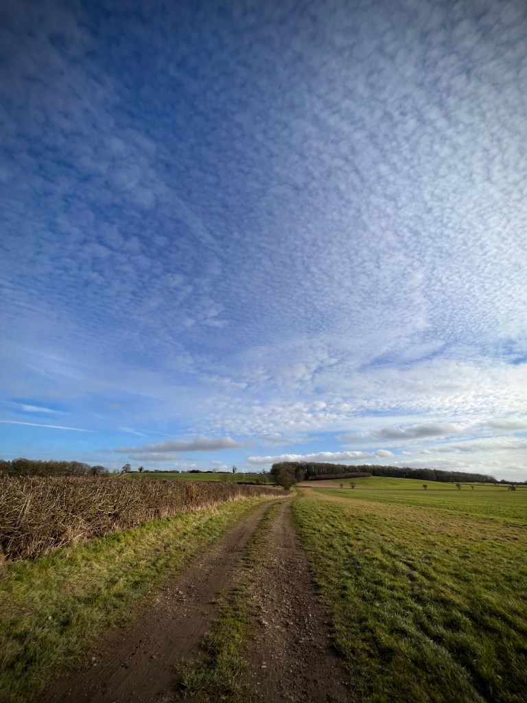 We had a lovely short walk this afternoon but one of two halves. The first was almost springlike with blue skies, light wind and a skylark singing from somewhere high above us. The second half was very much like winter with the gloom descending, a cold wind starting to blow and large flocks of winter thrushes passing through.