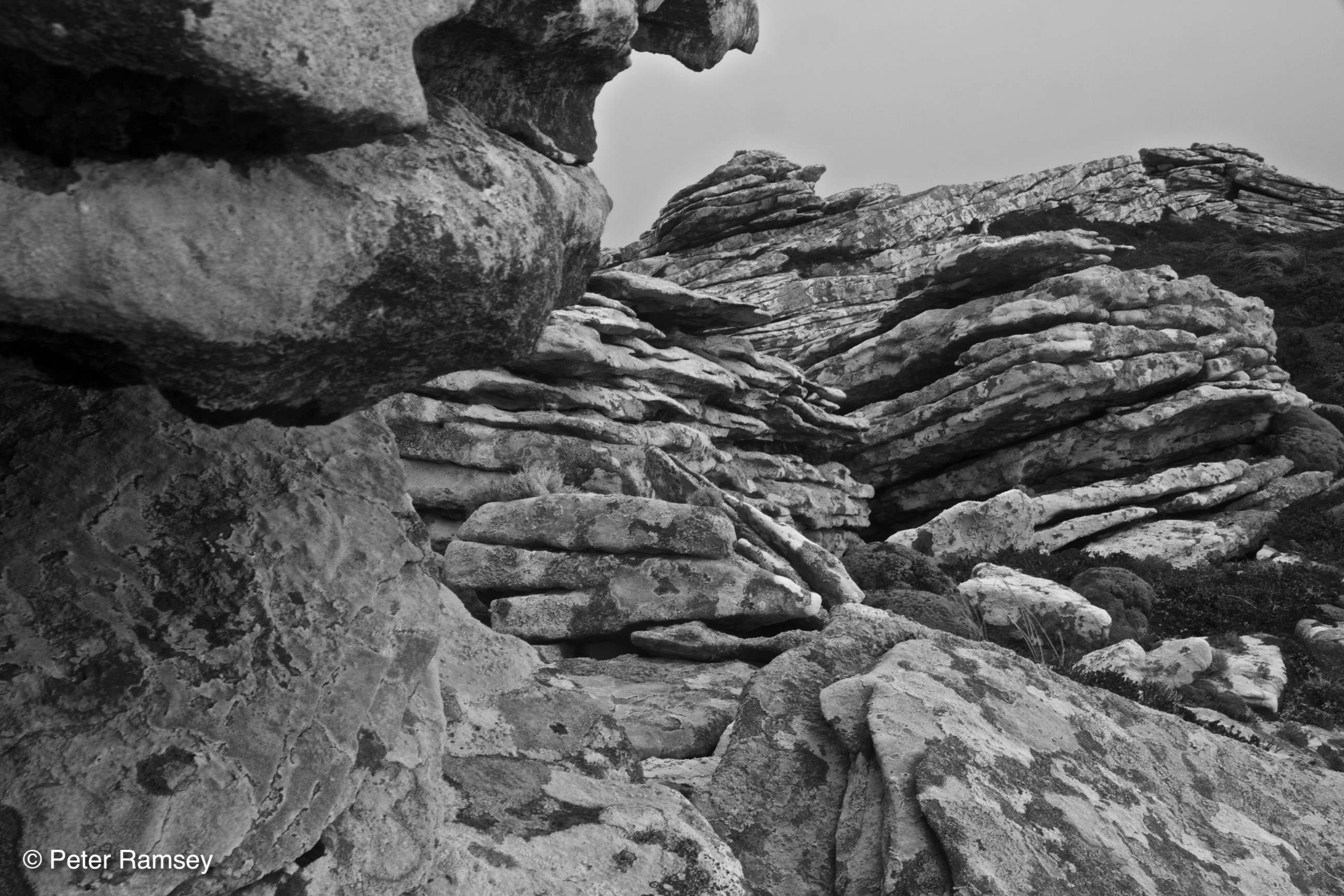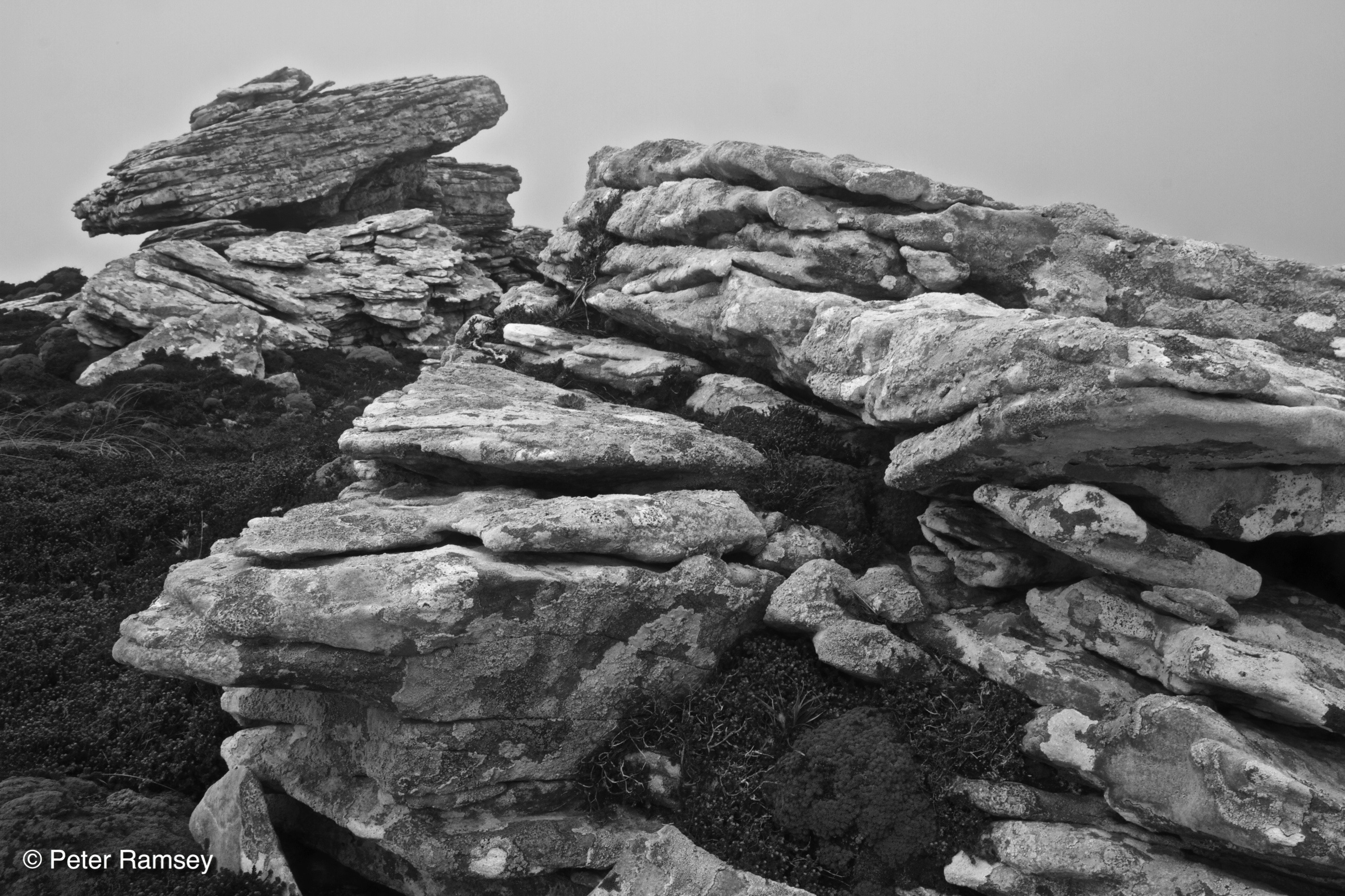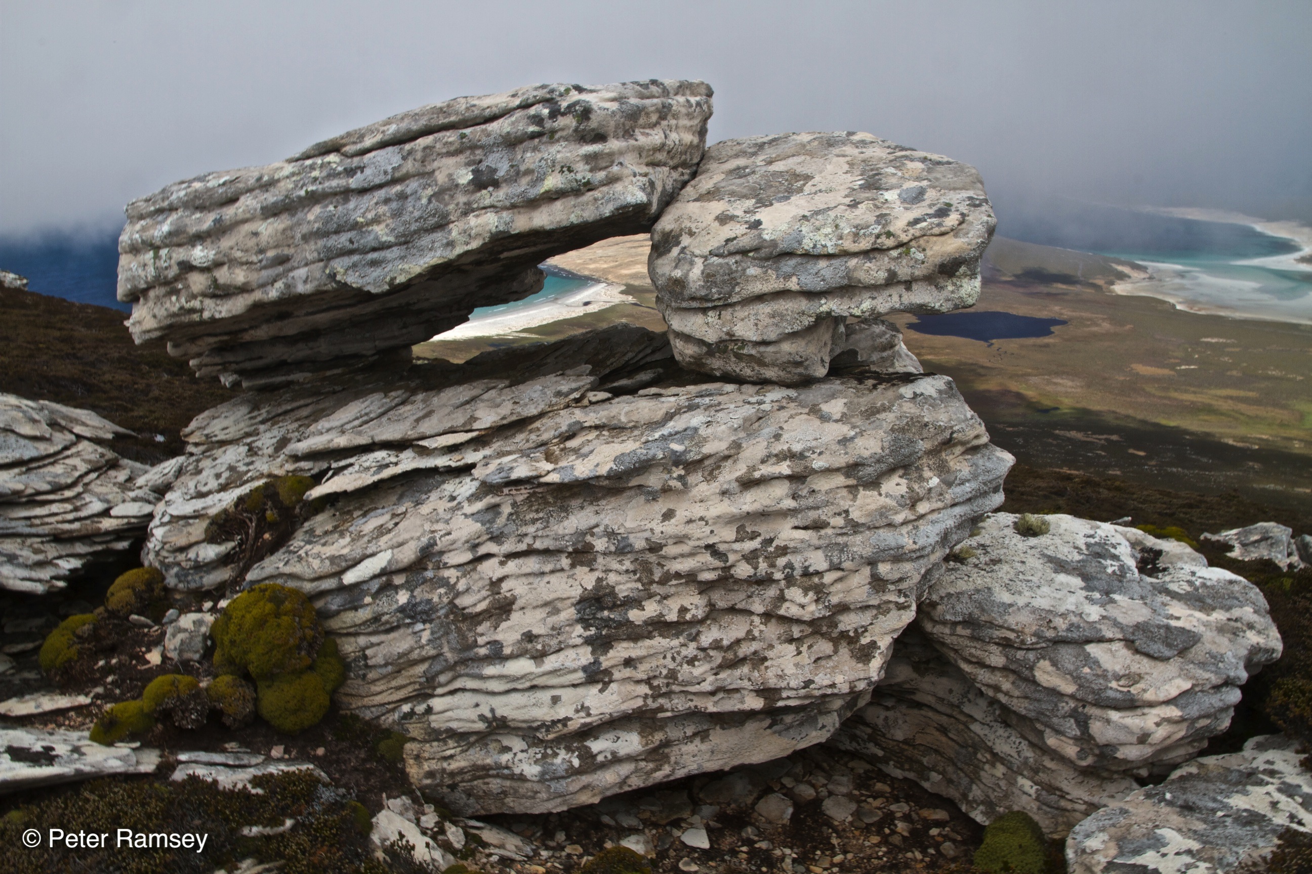 I arrived in the morning and was at the cabin by lunchtime. I spent the rest of the day walking up the nearby Rookery Mountain (422m) and then down towards the nearby beach. On top of the mountain the winds off the ocean have scoured the rocks and boulders, leaving strange carvings, almost like solid lenticular clouds.