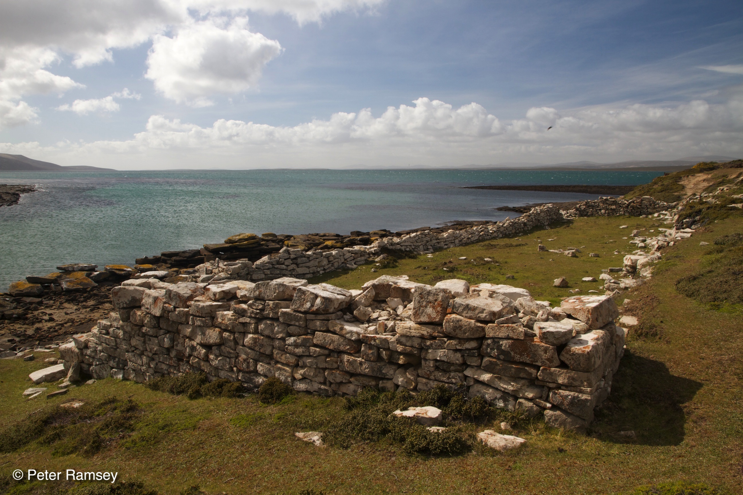 The original British settlement in the Falklands, Port Egmont, was established on Saunders in 1765. Yes that seems a long time ago and the tumbled down remains of the first buildings lie there true to that but there is a sense of continued history on the island that is perhaps stronger than elsewhere because of their presence. The links from that first settlement to the events of 1982 and on to now are in the aura of the place and almost tangible; in fact, they are. You can touch the stones of those first buildings, you can touch the Argentinian landing craft now lying derelict on the beach and you can touch the ‘there and now’ in everything. Throughout my stay amongst the islands, there was a true sense of an ongoing history, of people living it and of a place touched by it. Yet, what is obvious there is that our impact on the land is but a tiny scar in its history; the natural history is so much more, so much richer.